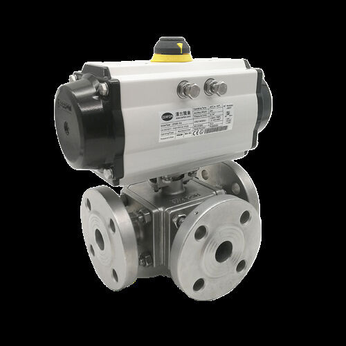 De pneumatische driewegbalk maakt gebruik van een bol met een gat in het midden om de vloeistofstroom te regelen.robuuste constructieDeze klep wordt veel gebruikt in industriële toepassingen, waaronder de olie- en gassector, de chemische sector, de elektriciteitsproductie en de waterbehandeling.